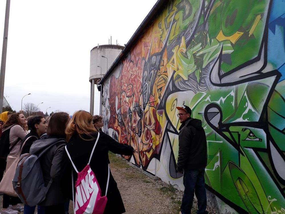 1er jour de l'échange: le graffitti tour avec Arnaud Moyen, responsable de l'association la Caverne: découverte de l'art urbain.