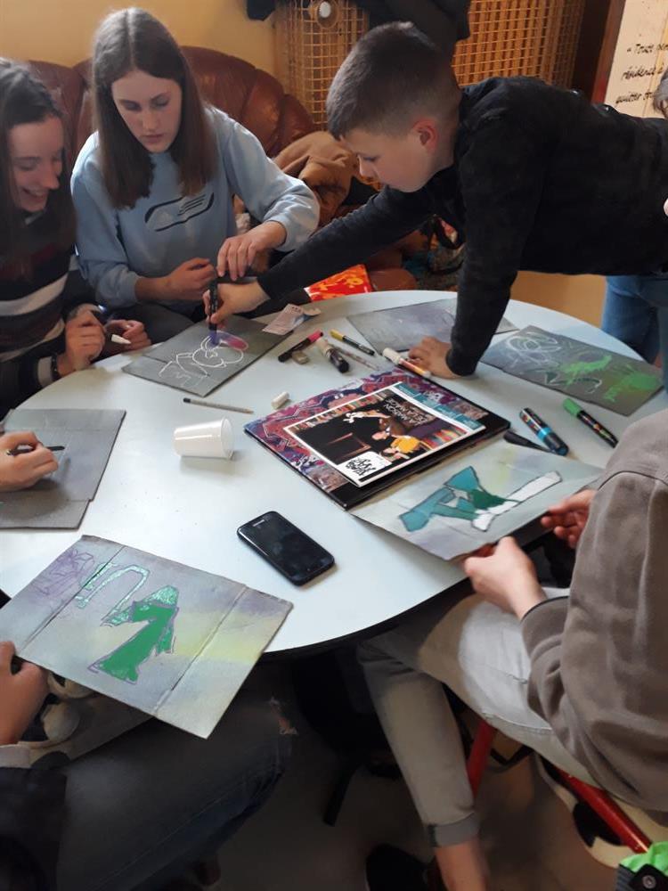 Les élèves se sont ensuite confrontés à la difficulté de réalisation de petits graffs sur un mot choisi.