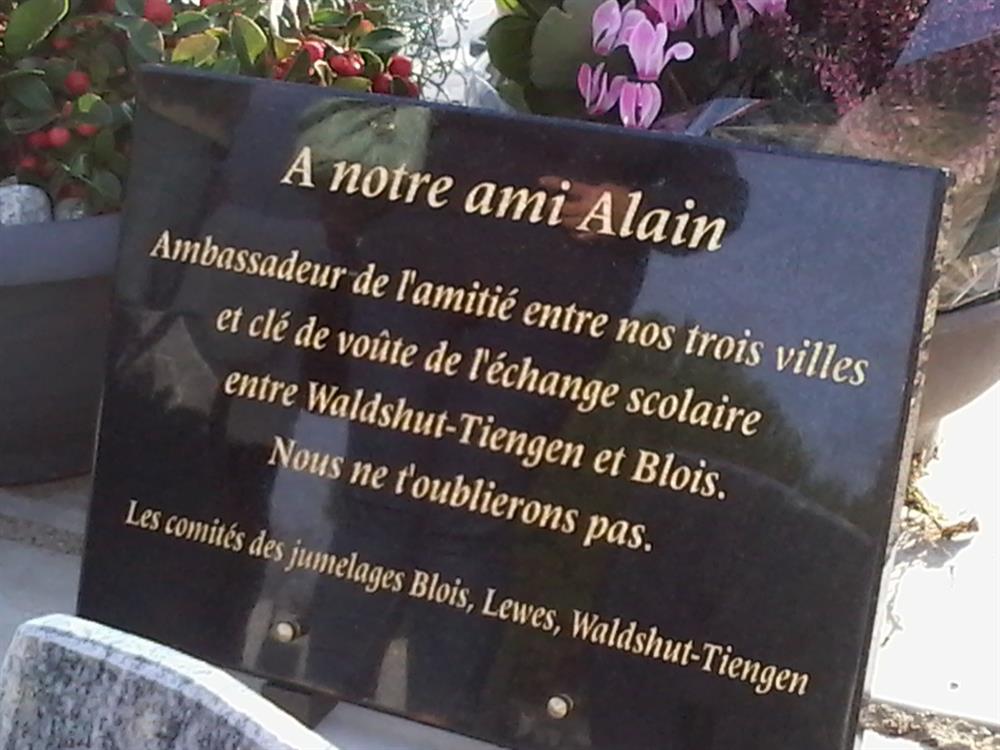 Après un bref repas et une visite de la Pagode de Chanteloup, il a été rendu hommage à Alain Jouet, notre ami et ancien vice-président Allemagne.Une plaque au nom des 3 associations a été déposée sur sa tombe.