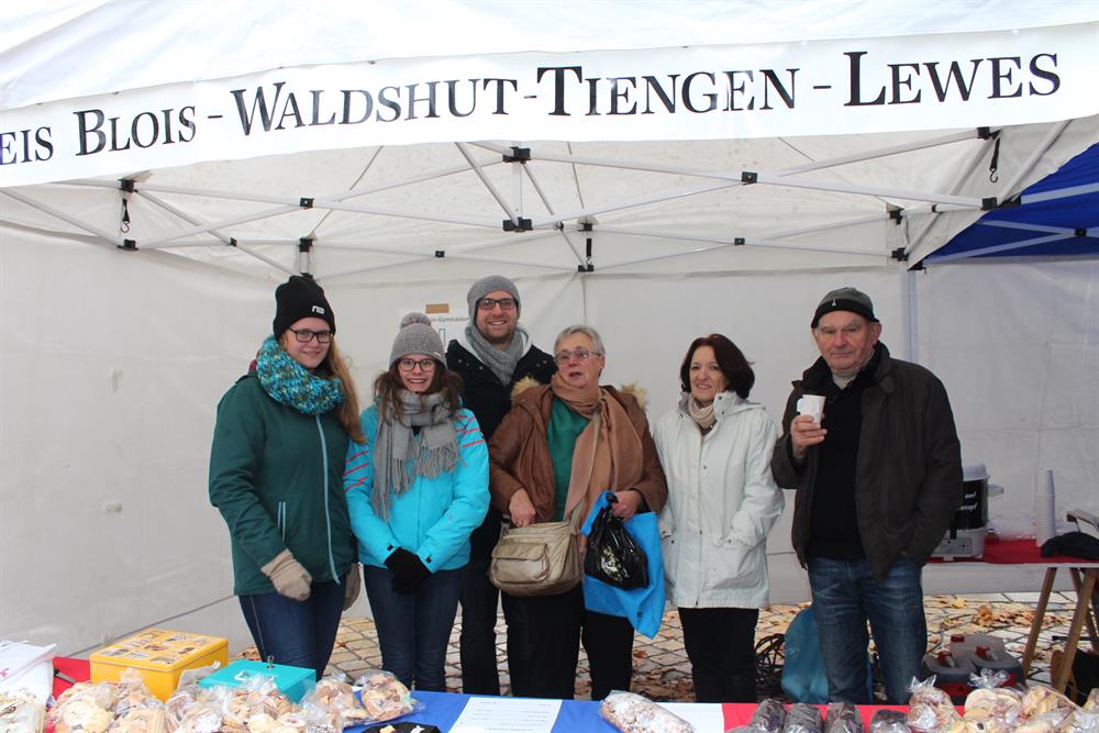 Cette année, Irène, trésorière du comité de jumelage de Waldshut-Tiengen qui avait fêté ses 20 ans de St Nicolas en 2016, est revenue pour passer la main à des jeunes du Lycée de Waldshut accompagnés de leur professeur Samuel Graff. 2 jeunes filles et Samuel ont donc tenu le stand cette année avec l'aide d'Irène,Peter et Philippe, membre de notre association, pour le montage et le démontage.